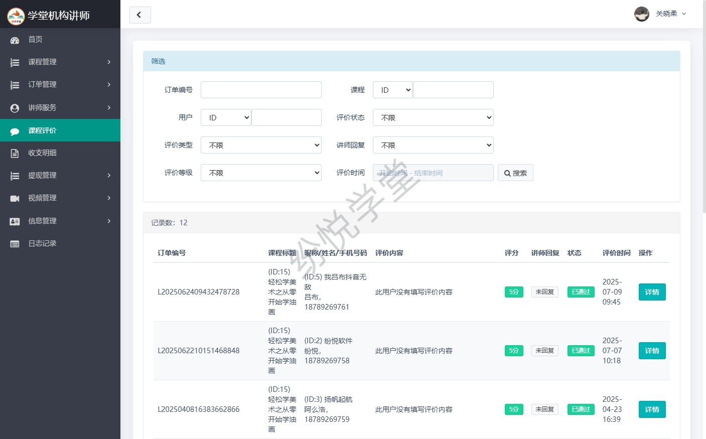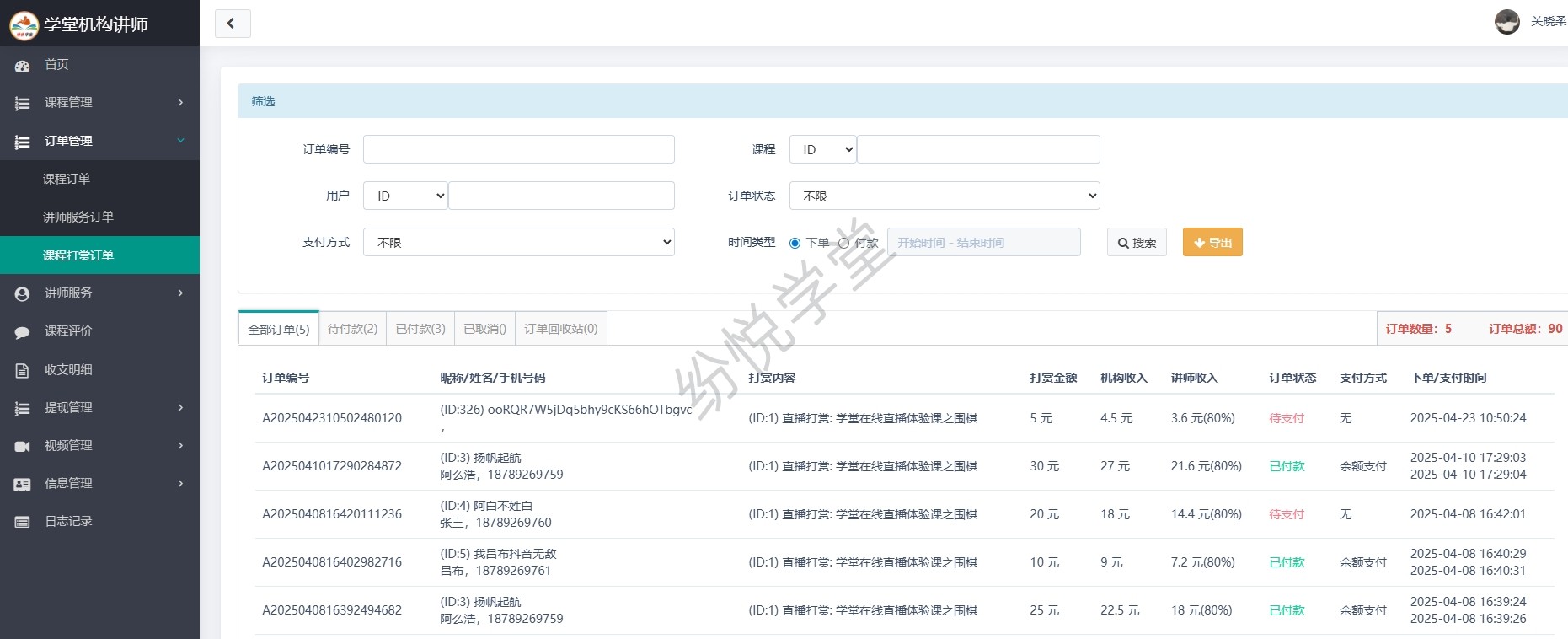 学堂机构讲师(插件)